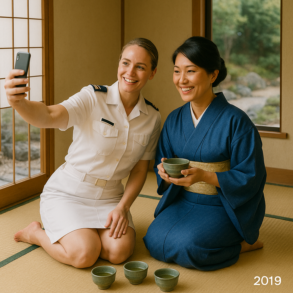 Azafatas y japonesas con kimono